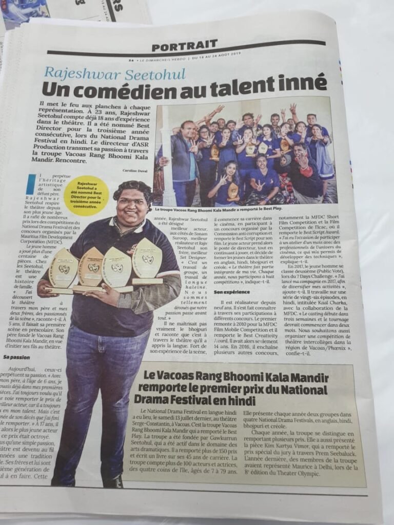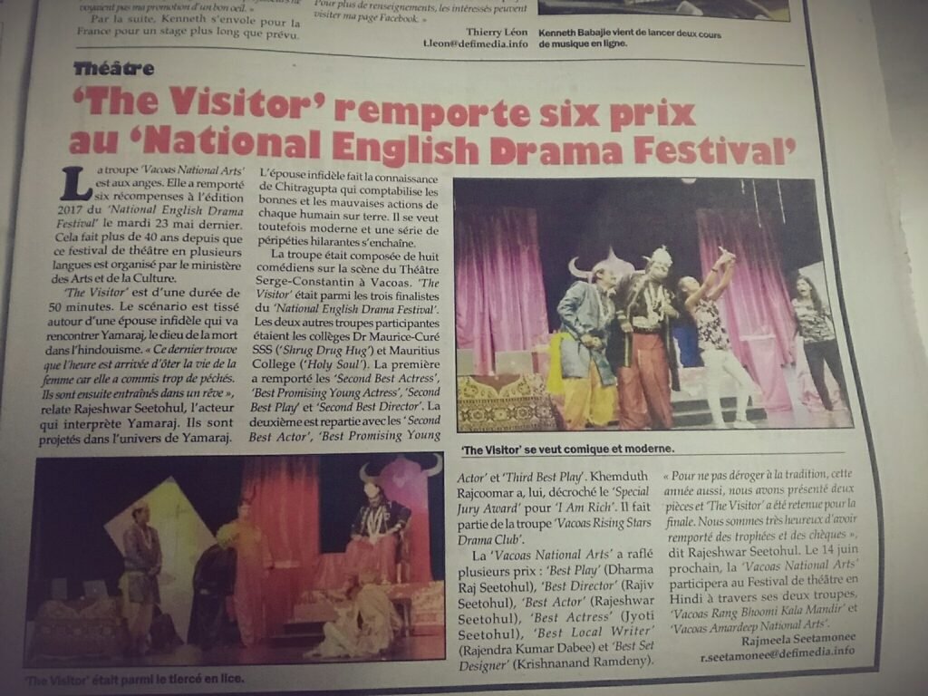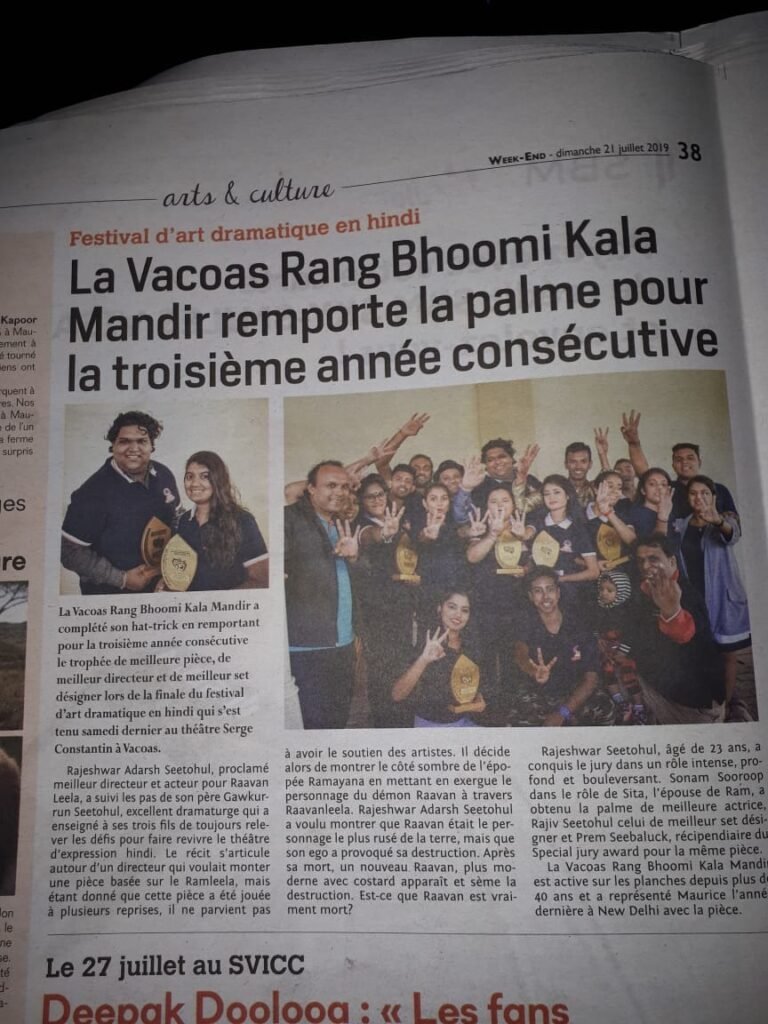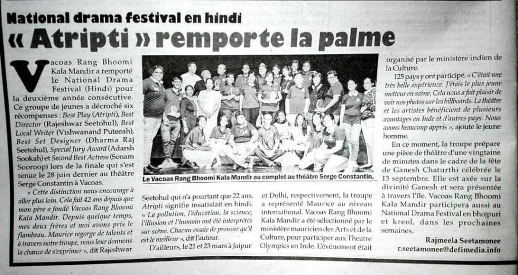 Great Success at the English Drama Festival for Vacoas Rang Bhoomi Kala Mandir