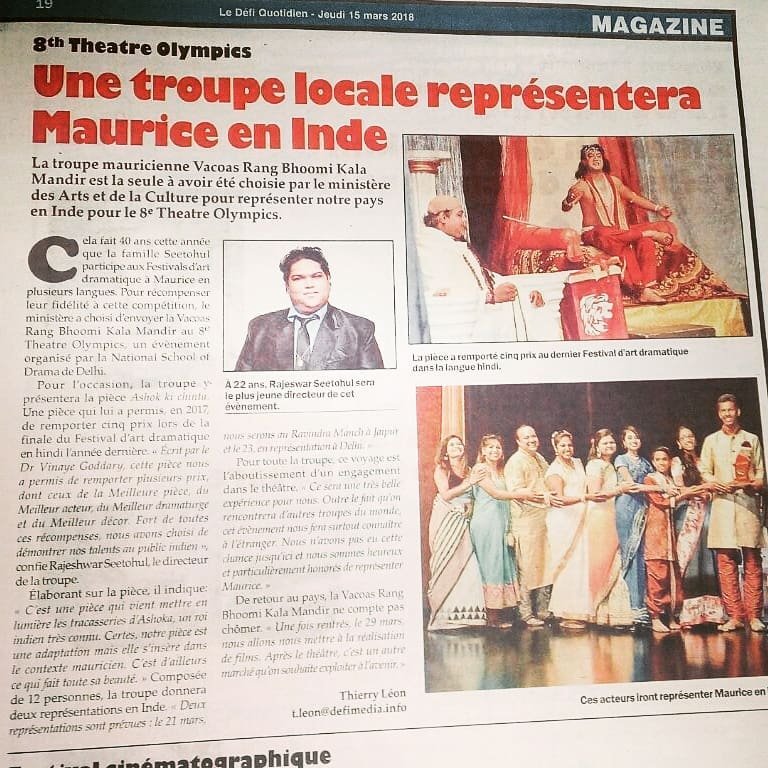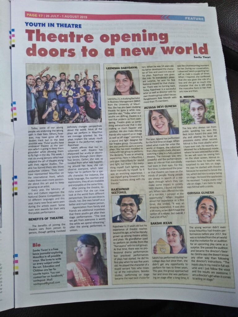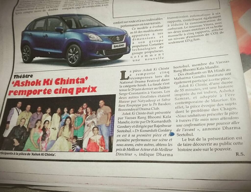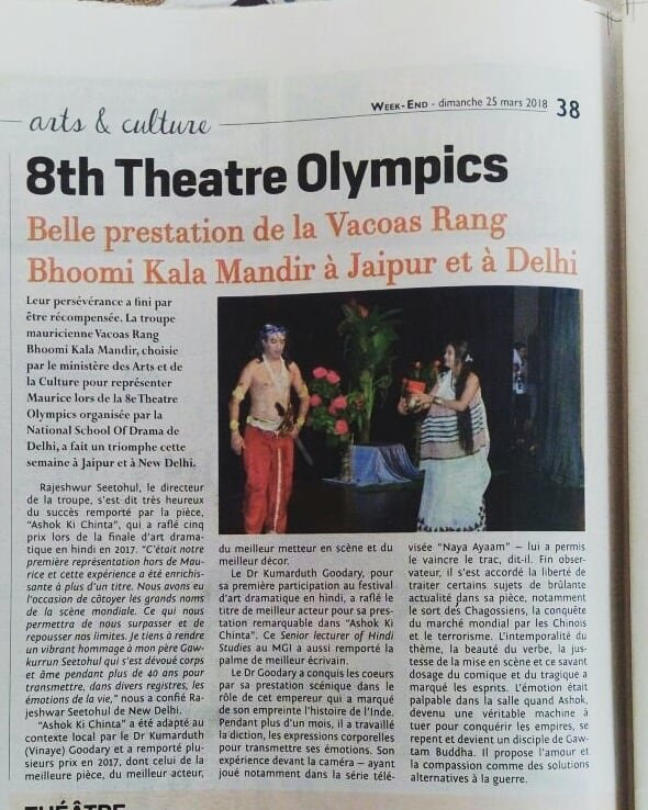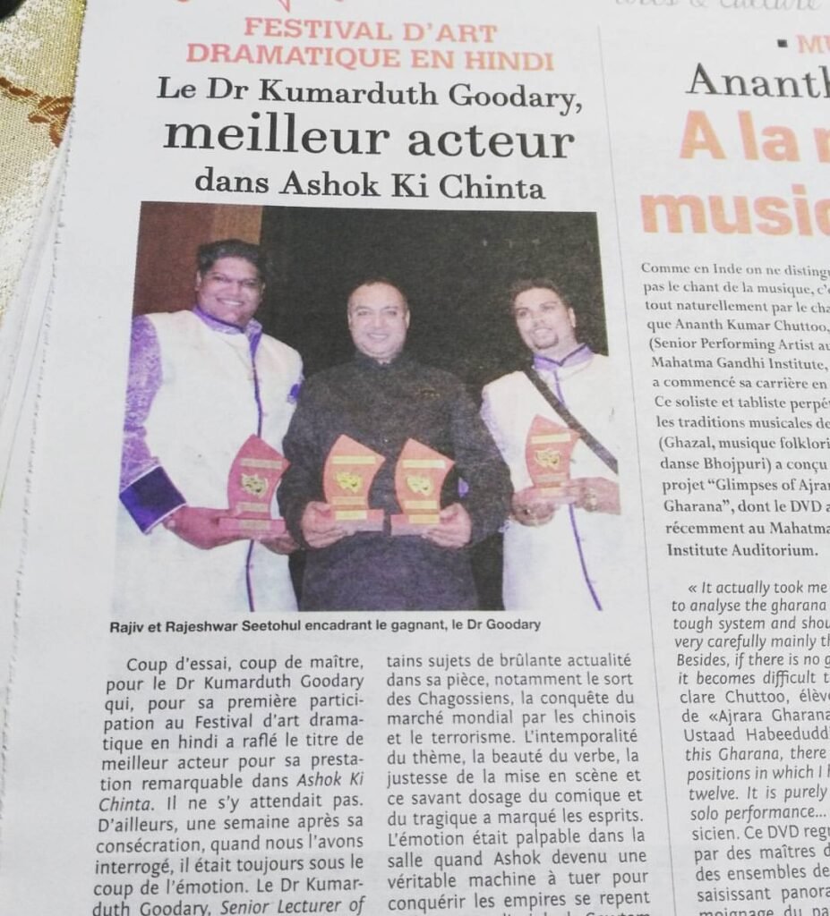 Great Success at the English Drama Festival for Vacoas Rang Bhoomi Kala Mandir