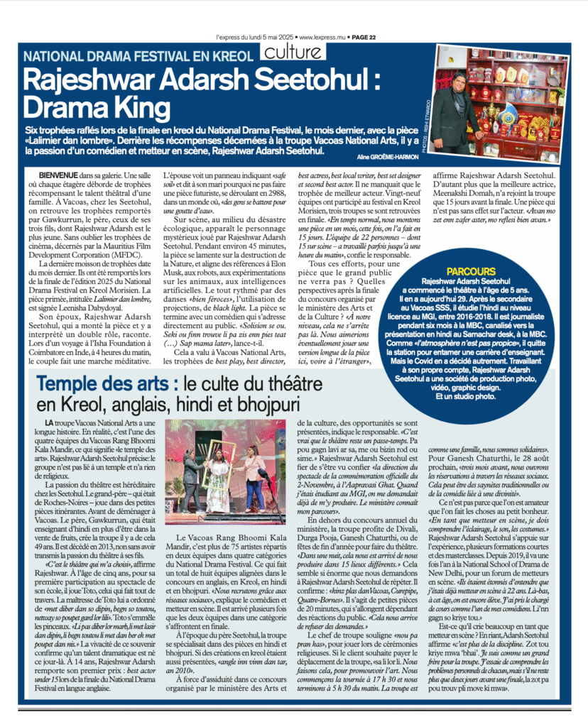 Rajeshwar Seetohul: Un acteur aux multiples facettes